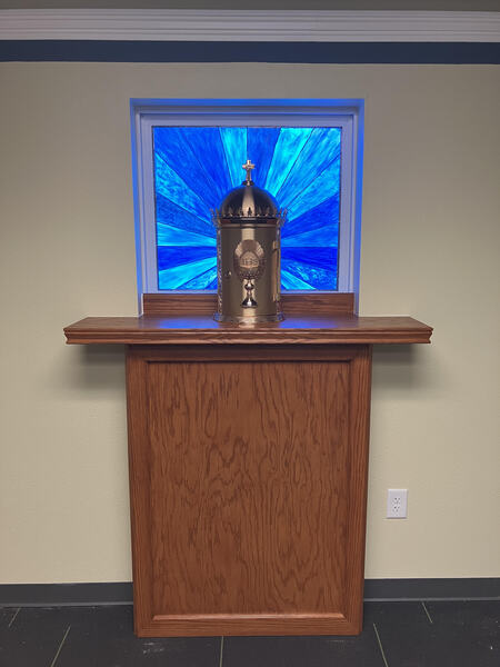 This 700 lb. altar for St. Austin Catholic Church is made with stained white oak and marble and brass from the former communion railing
