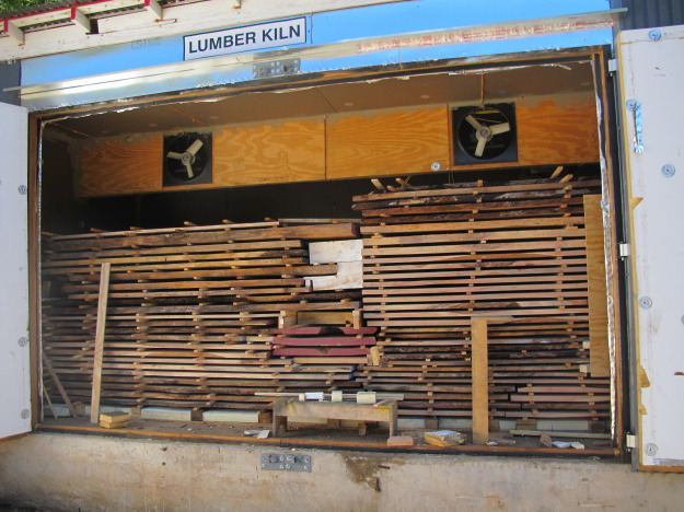 This photo shows the elm and pecan wood from trees that were cut down during the construction of the new Seton Hospital/University of Texas Medical School as the wood has been meticulously stacked in a kiln to be dried for several weeks. Landers’ Studio was contracted by Seton (and their sub-contractor J.E. Dunn) to act as a consultant on drying the wood and advising on the best means to ultimately utilize and showcase this wood in the new building. Mark has been working on rough milling the wood and stacking it properly in the kiln at the same time as working on the Oak Library project mentioned earlier. Possible suggested usages for the wood has been for use in a lobby reception desk and also as elements of a wall design and liturgical furniture in the Seton chapel.