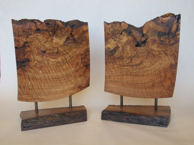 In viewing these first two pieces, Mark thought the wood itself was beautiful enough to stand alone as sculpture. He sanded the wood to a polish and attached brass rods to mount the wood on bases of thirty-year-old Texas walnut.