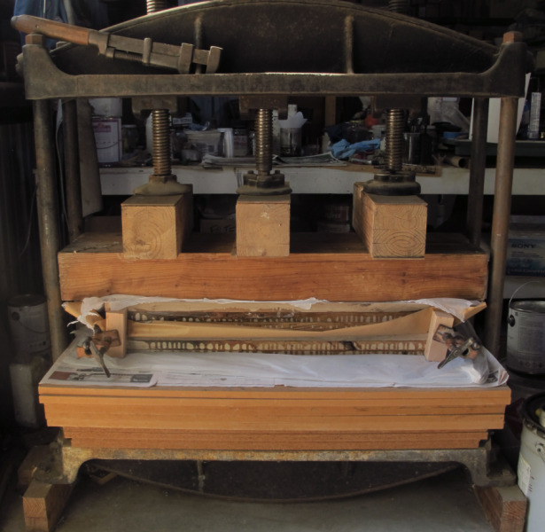Landers is now milling and processing the wood in order to create the components of his designs. For some components, the wood has had to be laminated into thicker stock. Some of the most showy natural pieces of wood have flaws and cracks that need to be epoxied for strength and beauty. I will blog again as the components start coming together into liturgical furniture for the new Chapel.